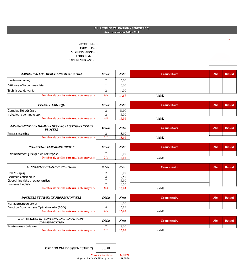 Each subject (Marketing, Finance, Management, Law, Languages, etc.) should exist as a Course.