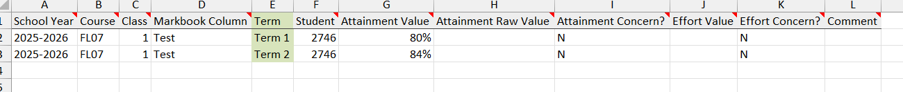 However, this creates ambiguity when importing marks using the DataStructure-markbookEntry.xlsx template, since there is no way to distinguish between columns that share the same name.