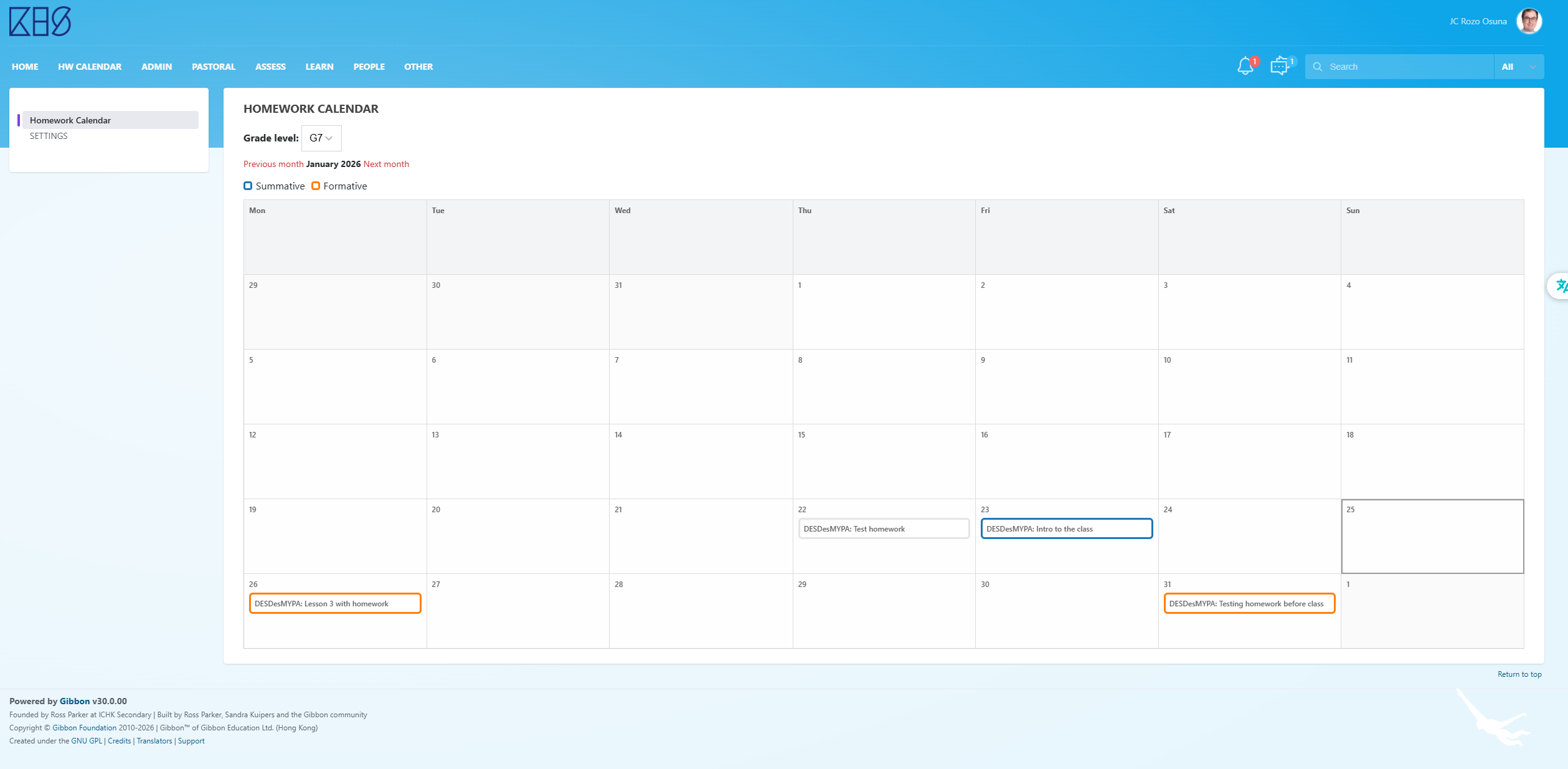The motivation was very focused. In our implementation of ManageBac, one feature that is heavily used by students, parents, and teachers is the homework calendar style view, which surfaces deadlines visually and independently of the daily timetable. I wanted to see whether something similar could be achieved in Gibbon without modifying core code. I explicitly wanted to avoid touching the core, both for maintainability and upgrade reasons, which led me to explore module development.