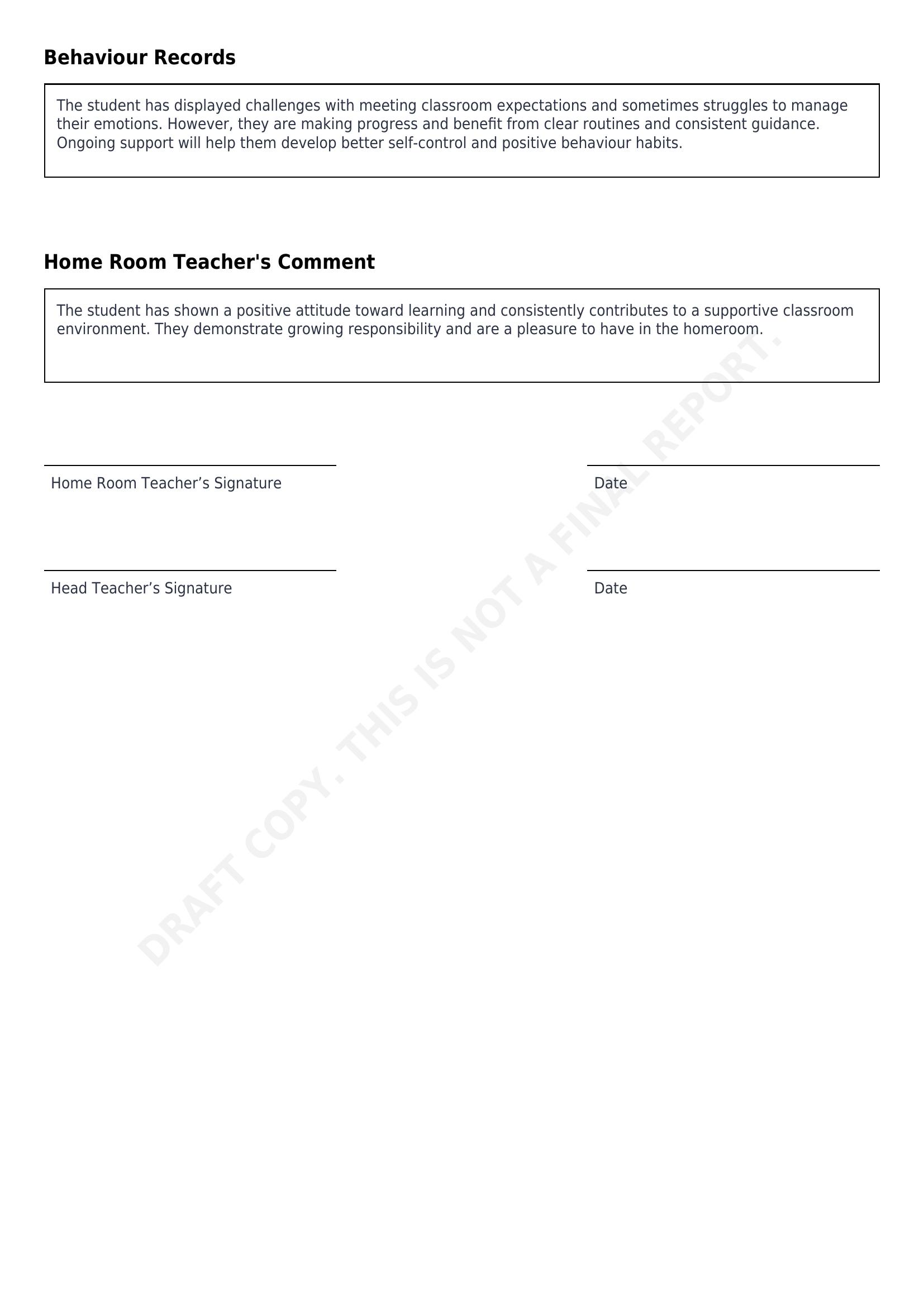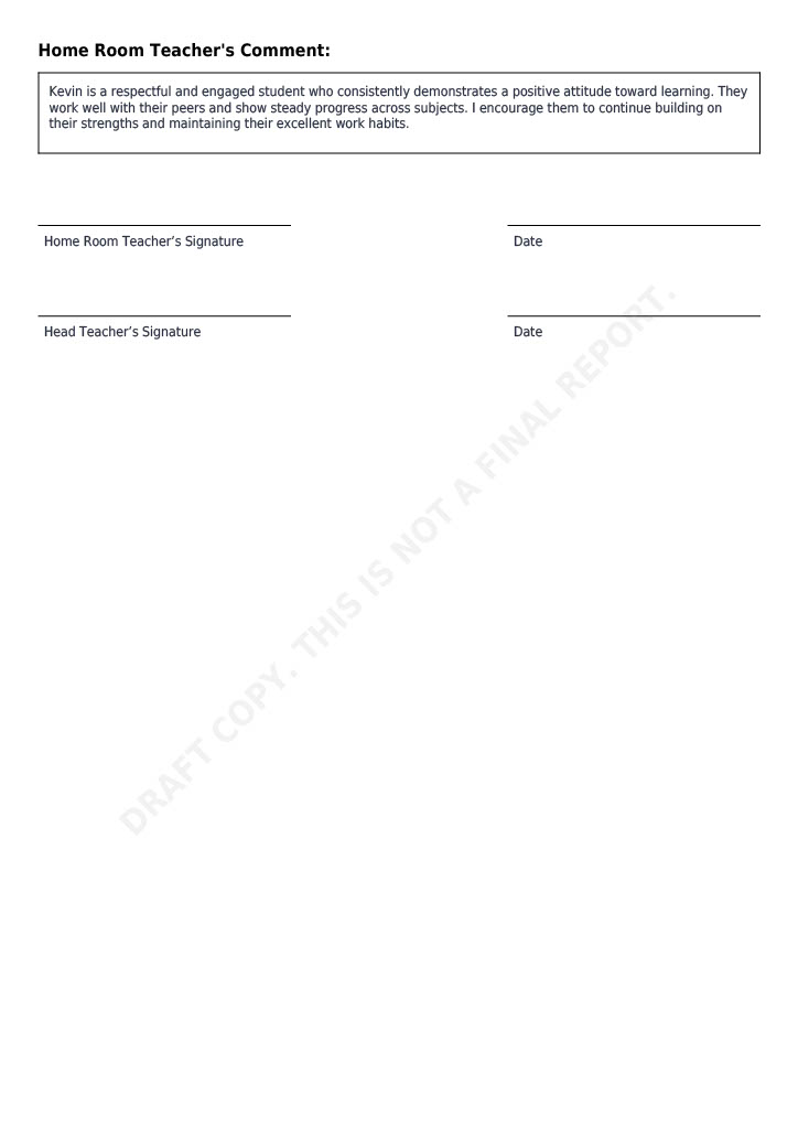 • Homeroom Teacher’s Comments: All