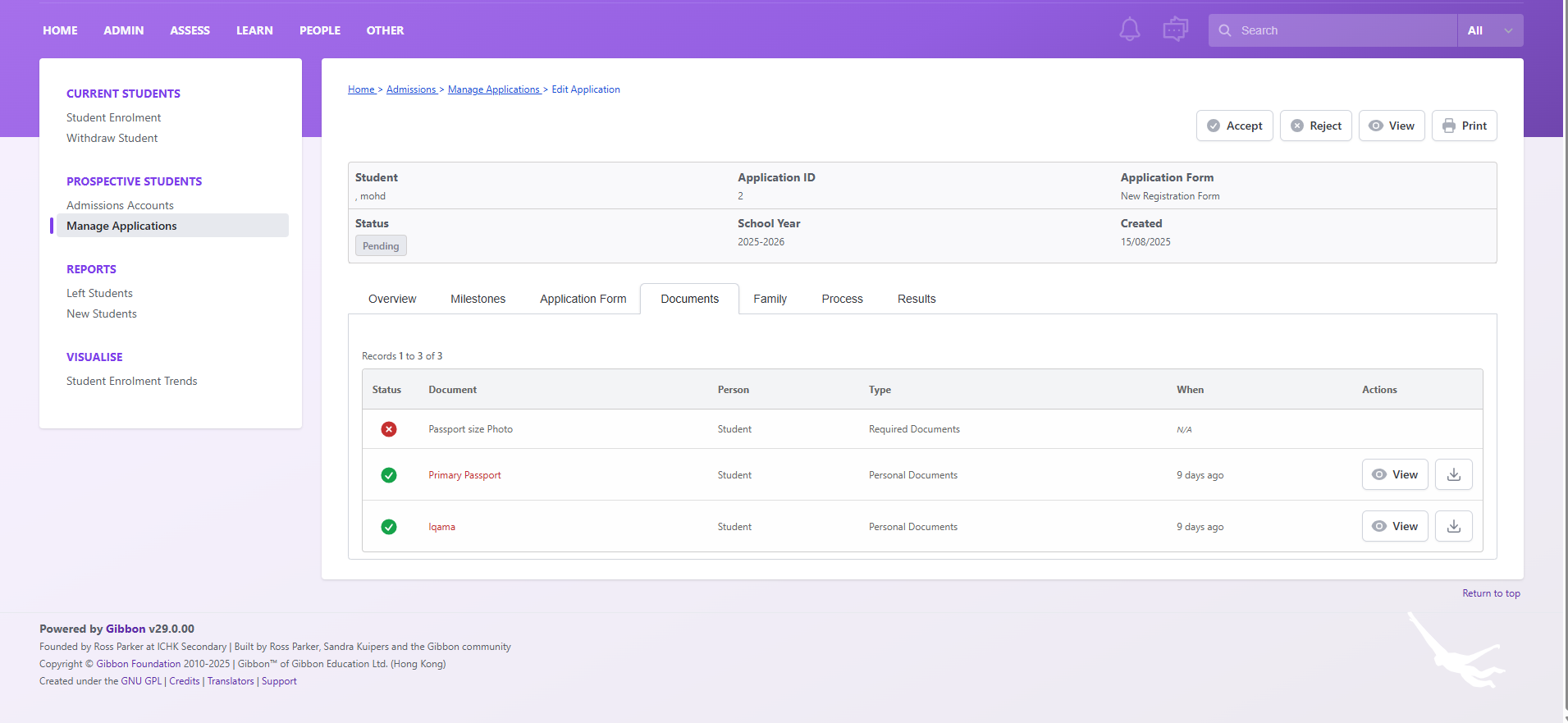 We recently added a student via the Student Applications section on the login page. While we can see the application details in Manage Applications, the uploaded documents are not visible and cannot be viewed or downloaded.